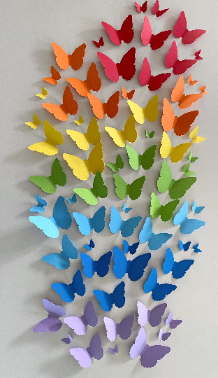 Bright and beautiful Rainbow Butterfly cut-outs made from quality textured cardstock.