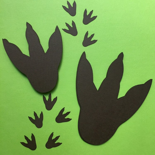 Dinosaur footprints, made from quality textured cardstock in dark brown.