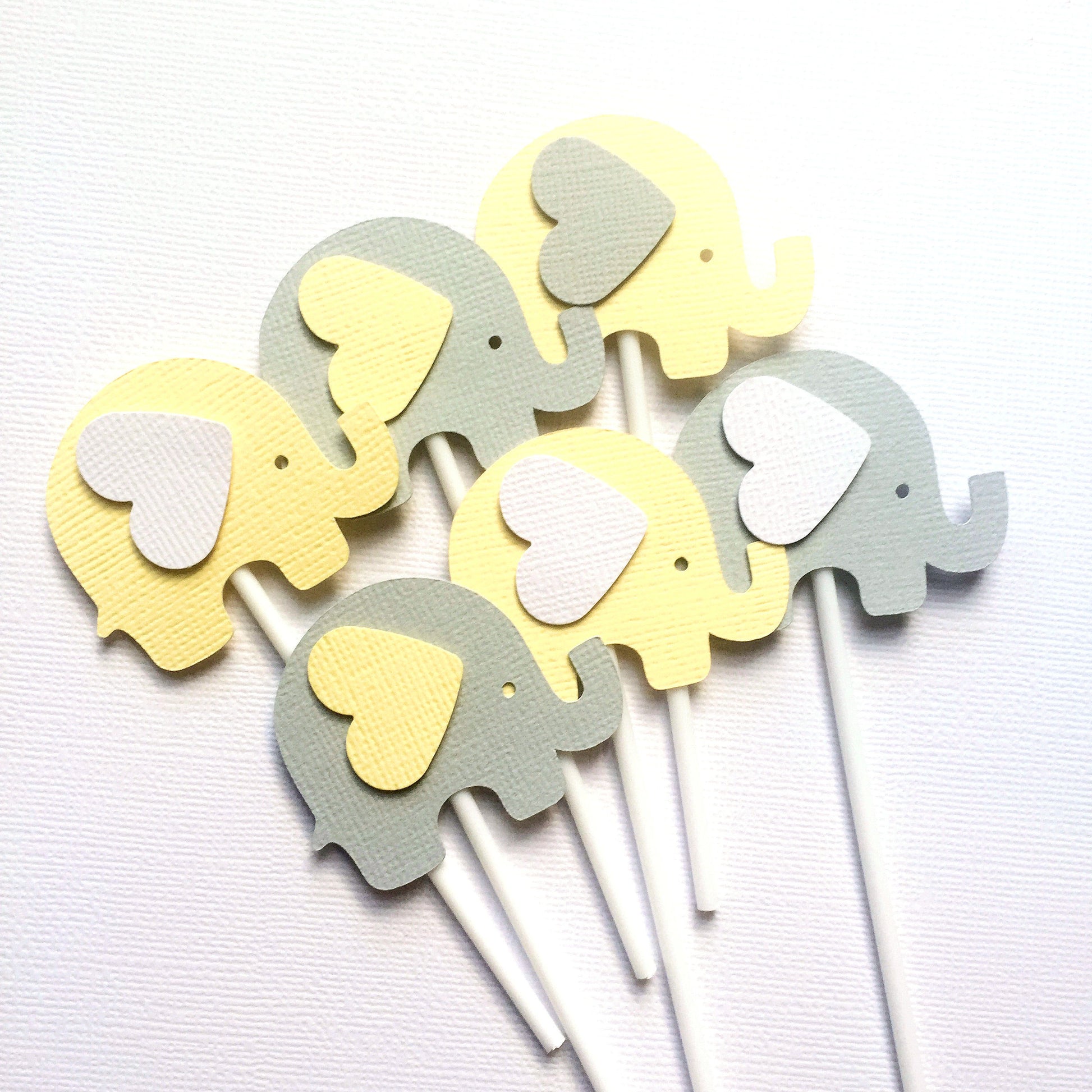 Elephant Cupcake Toppers Pastel Yellow and Grey