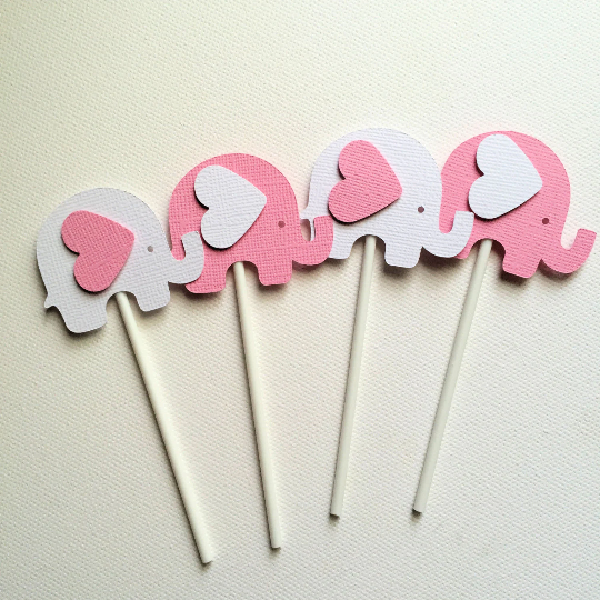 Pink and grey elephant baby shower cupcake toppers.